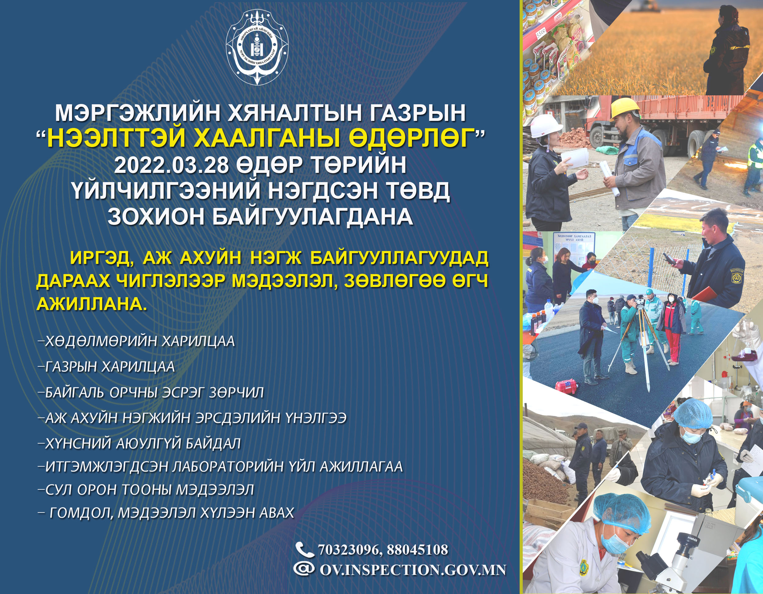 "Хөдөлмөрийн аюулгүй байдал, эрүүл ахуйн" сарын аяны хүрээнд аж ахуйн нэгж, байгууллагуудын хөдөлмөр