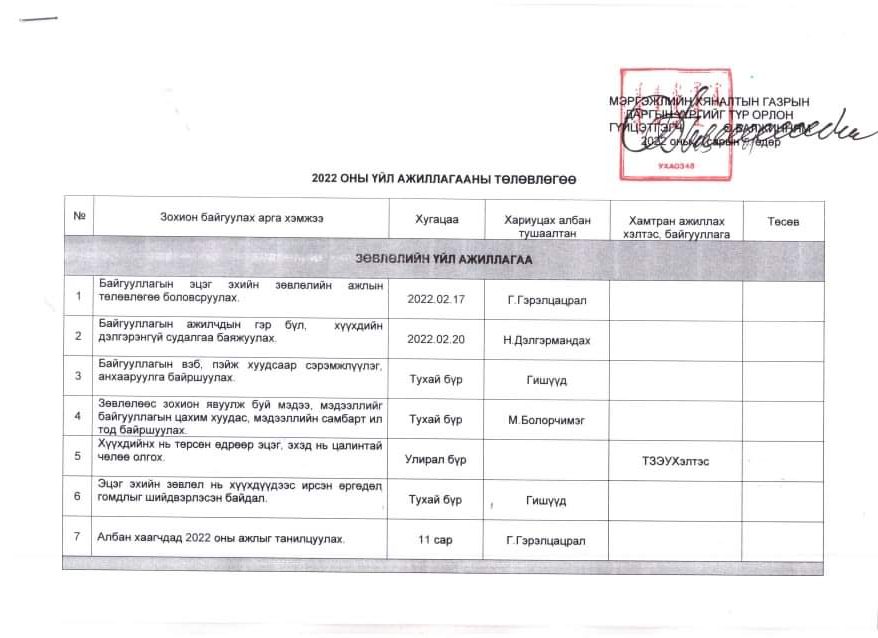 МХЕГ-ын даргын баталсан удирдамжийн дагуу Дорнод аймгийн Мэргэжлийн хяналтын газрын нийг